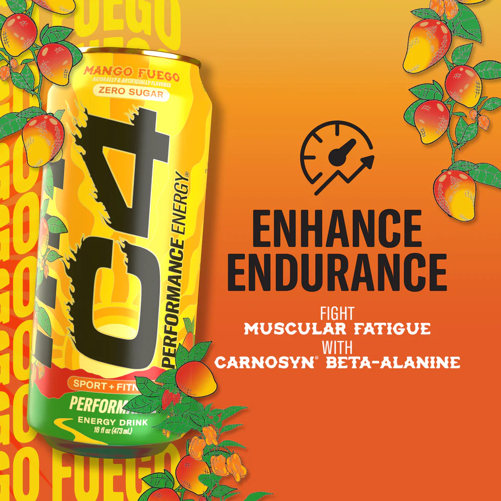 C4 Energy Mango Fuego runs the same performance formula you'd expect from the line, and it's cleaner than most competing energy drinks on store shelves.