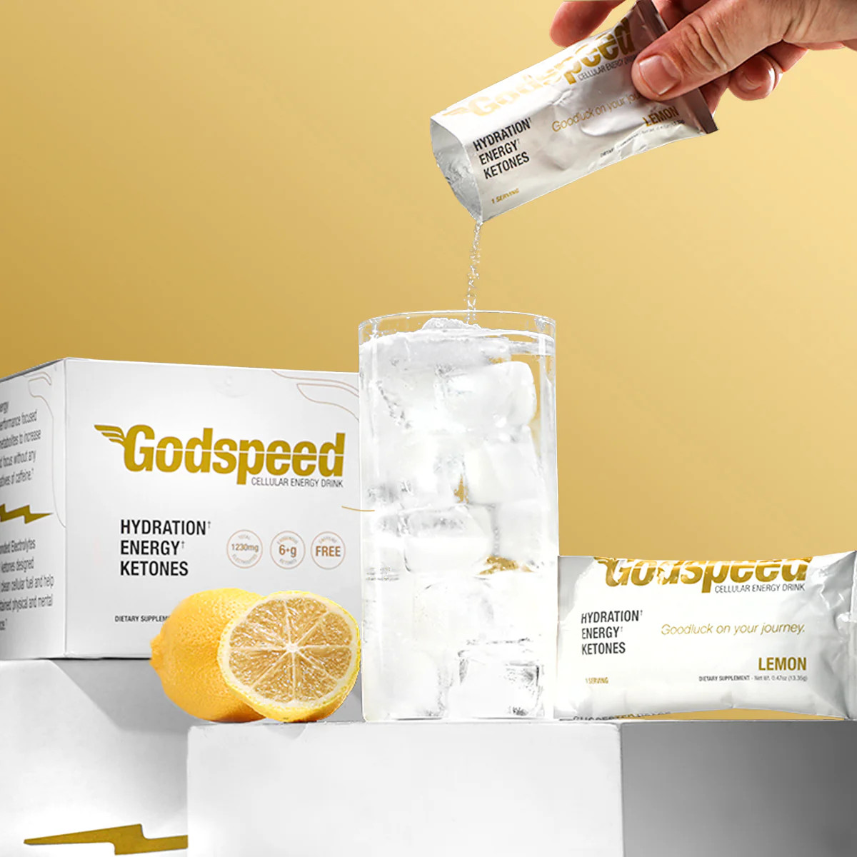 Godspeed Cellular Energy Drink anchors its formula on a large dose of exogenous ketones from Ketone Labs' goBHB, delivering approximately 6.77 grams of BHB salts per serving. This positions the product within the emerging category of ketogenic supplements designed to support metabolic flexibility without requiring carbohydrate restriction.