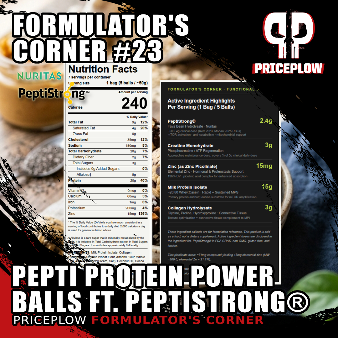 What if your morning snack worked like a recovery formula? In Formulator's Corner #23, we design a hypothetical high-protein power ball built around PeptiStrong® and a surprisingly complete muscle support stack. Will a forward-thinking brand bring this to market?