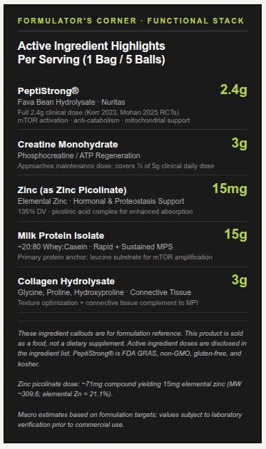 In today's installment of our Formulator's Corner series, we design a hypothetical high-protein snack (protein power balls) built around a clinically studied peptide ingredient and a surprisingly complete muscle support stack. Will a forward-thinking brand bring this to market?