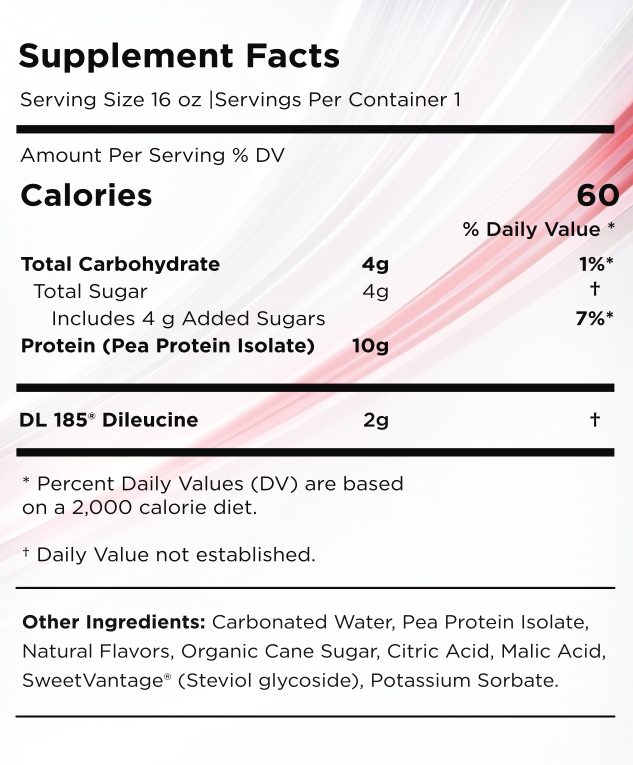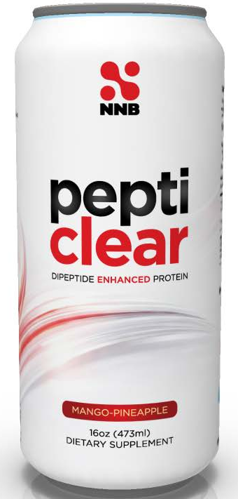 PeptiClear is a 16oz, 60-calorie, mango-pineapple-flavored clear protein soda concept that puts two of NNB's technologies to work in a single can. The formula is straightforward: hydrolyzed pea protein isolate for the clear protein base, DL185 dileucine peptide to turbocharge the anabolic signal, and SweetVantage® steviol glycosides to sweeten it without bitterness or aftertaste.