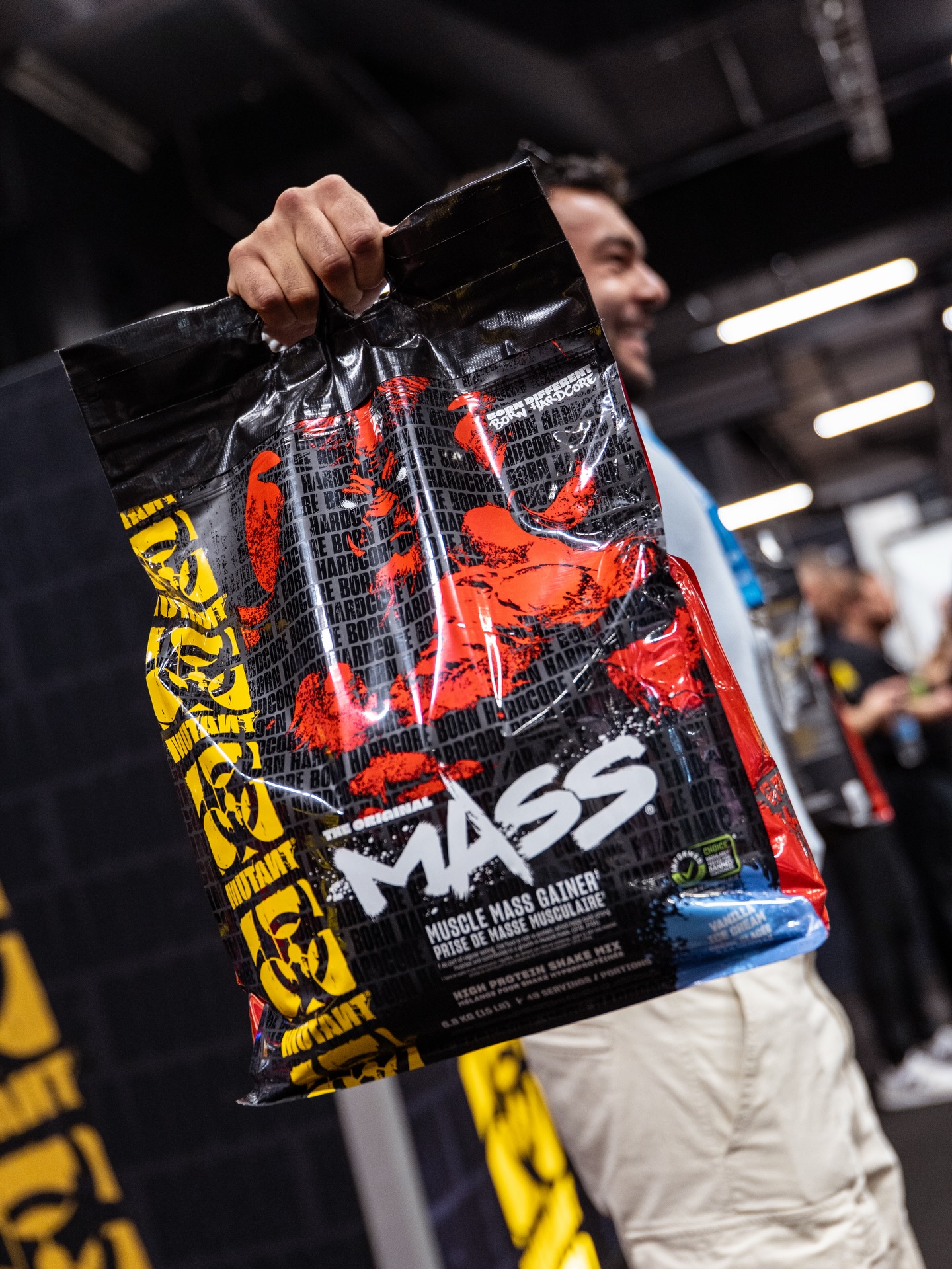 From that conversation, Mutant Mass was born. Jim designed it with a 20% protein ratio (higher than competing gainers like Serious Mass at 15-16%), MCT oil, waxy maize, and cluster dextrin, and he pushed for a 15-pound bag -- a size that didn't exist in the market. Guys in Sweden and Germany started calling unprompted. Mutant Mass spread to 80 countries almost overnight. "We weren't trying to take on the whole world," Jim says. "We just had a hot hand and held on to the tiger by the tail."