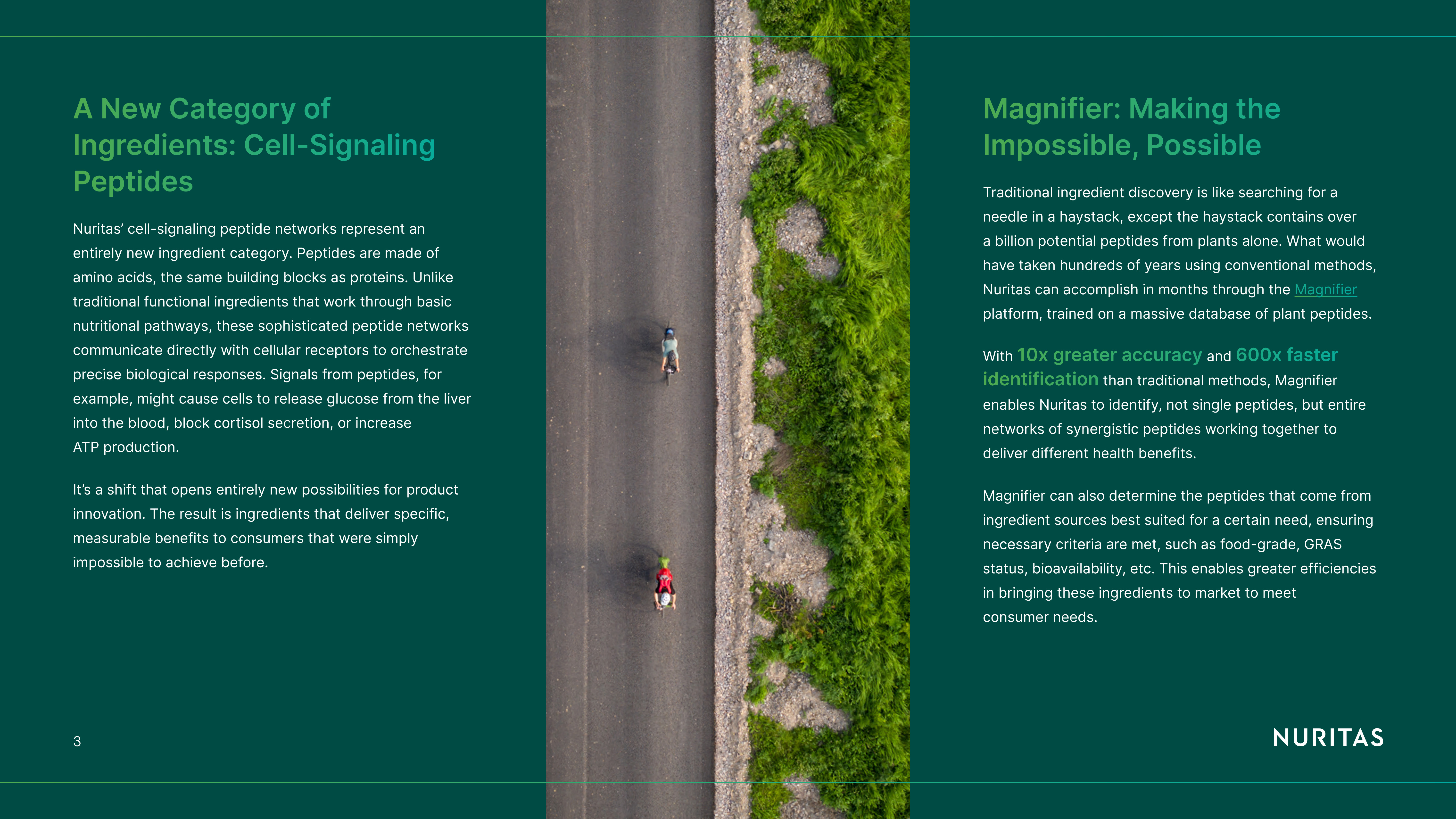 It's an ambitious vision, but with the AI Magnifier platform and commercialized ingredients like PeptiStrong® and PeptiSleep™ already making market impact, Nuritas is well on its way to making everyday products safer, healthier, and more effective through the power of natural peptides hidden in plants.