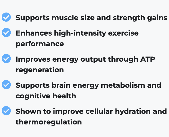 - Cognitive Support: Creatine supplementation improves cognitive performance following supplementation, with the brain's high energy demands making it responsive to increased phosphocreatine availability.[10-12]