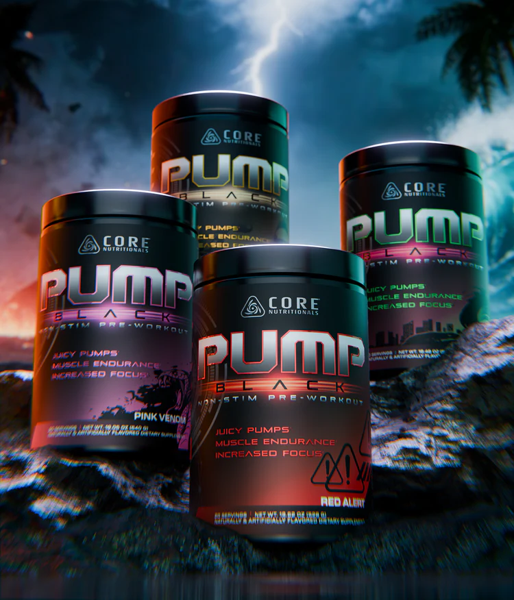 - Core PRE: CORE's caffeinated daily driver pre-workout pairs naturally with Pump Black, letting you keep the stim dose where you want it while the non-stim handles blood flow and endurance.