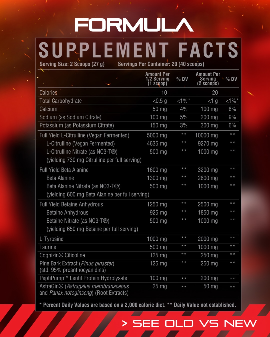 Before digging into each ingredient, let's separate the nitrates, as they're in three different components below at the following doses: