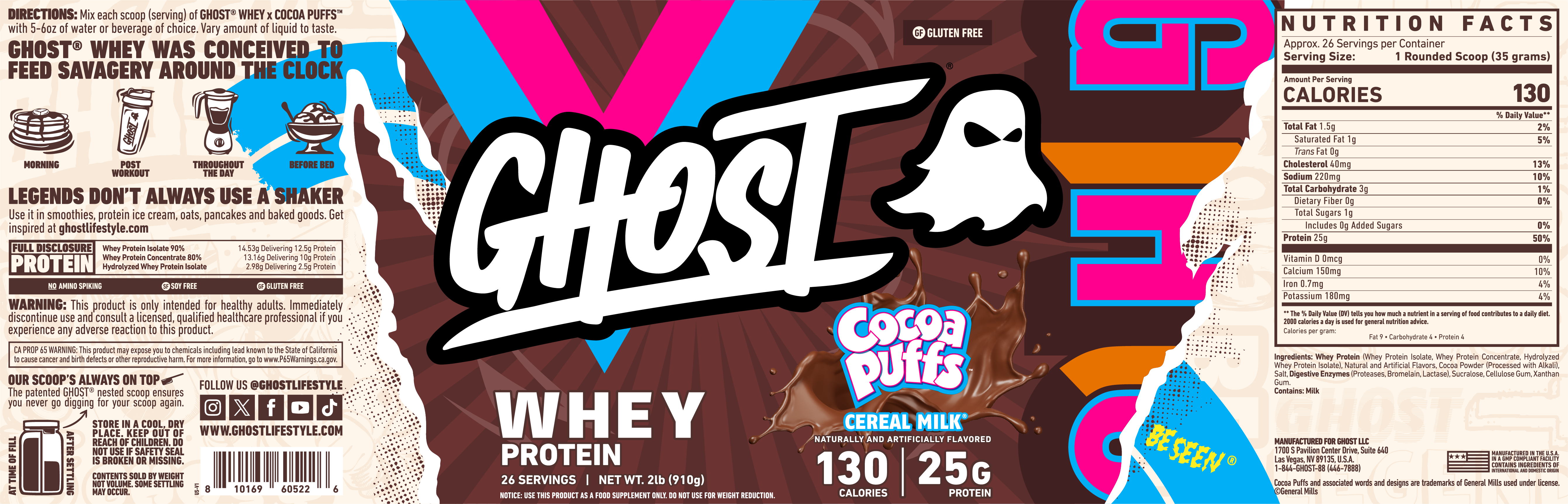What an accomplishment this is, given GHOST's first Whey flavor from 2016 was Cereal Milk, and now they're collaborating with the kings of cereal. If you've been a fan of either, think of these as upgraded, licensed versions with the real-deal branding behind them. Cocoa Puffs is a brand new flavor to the lineup.
