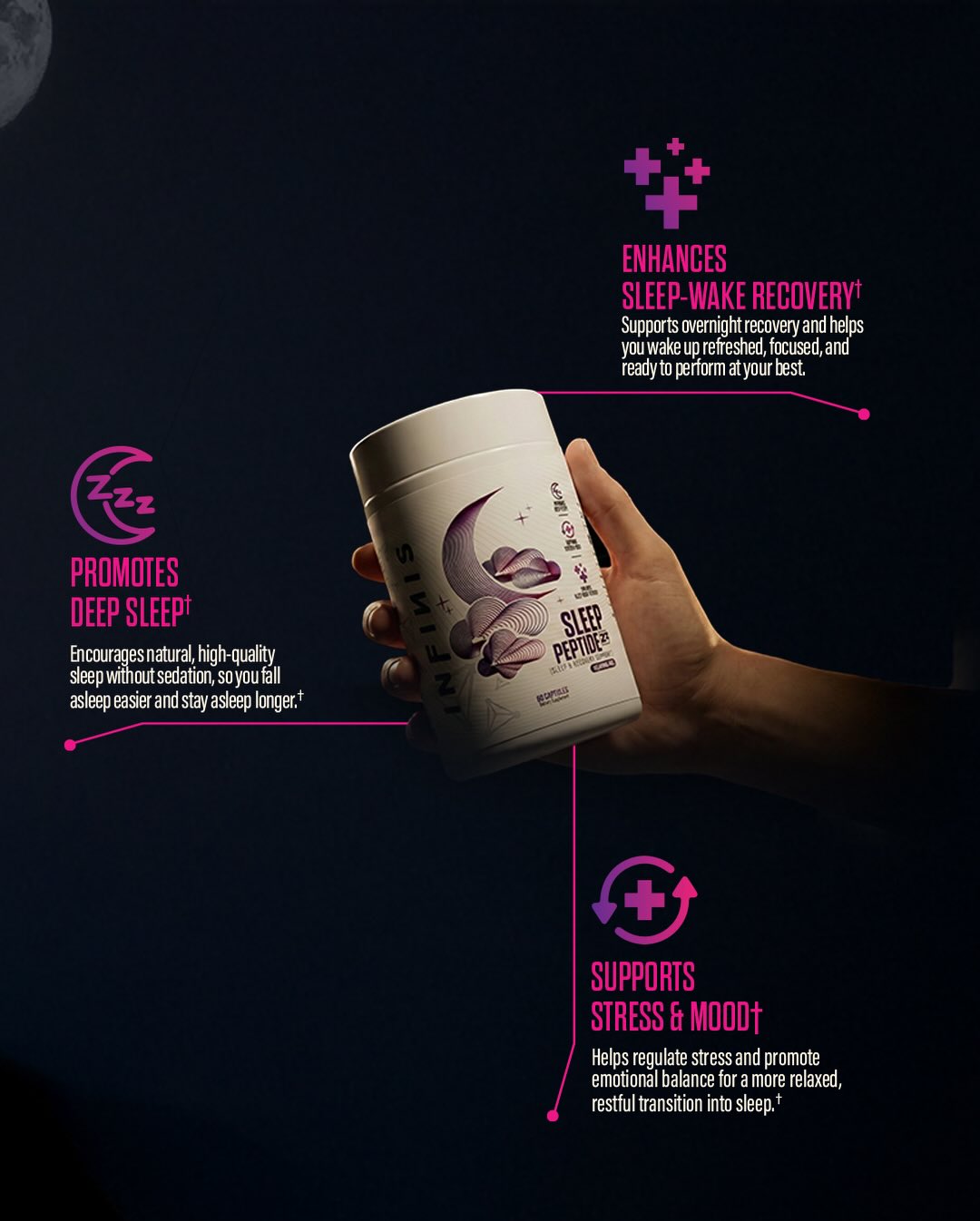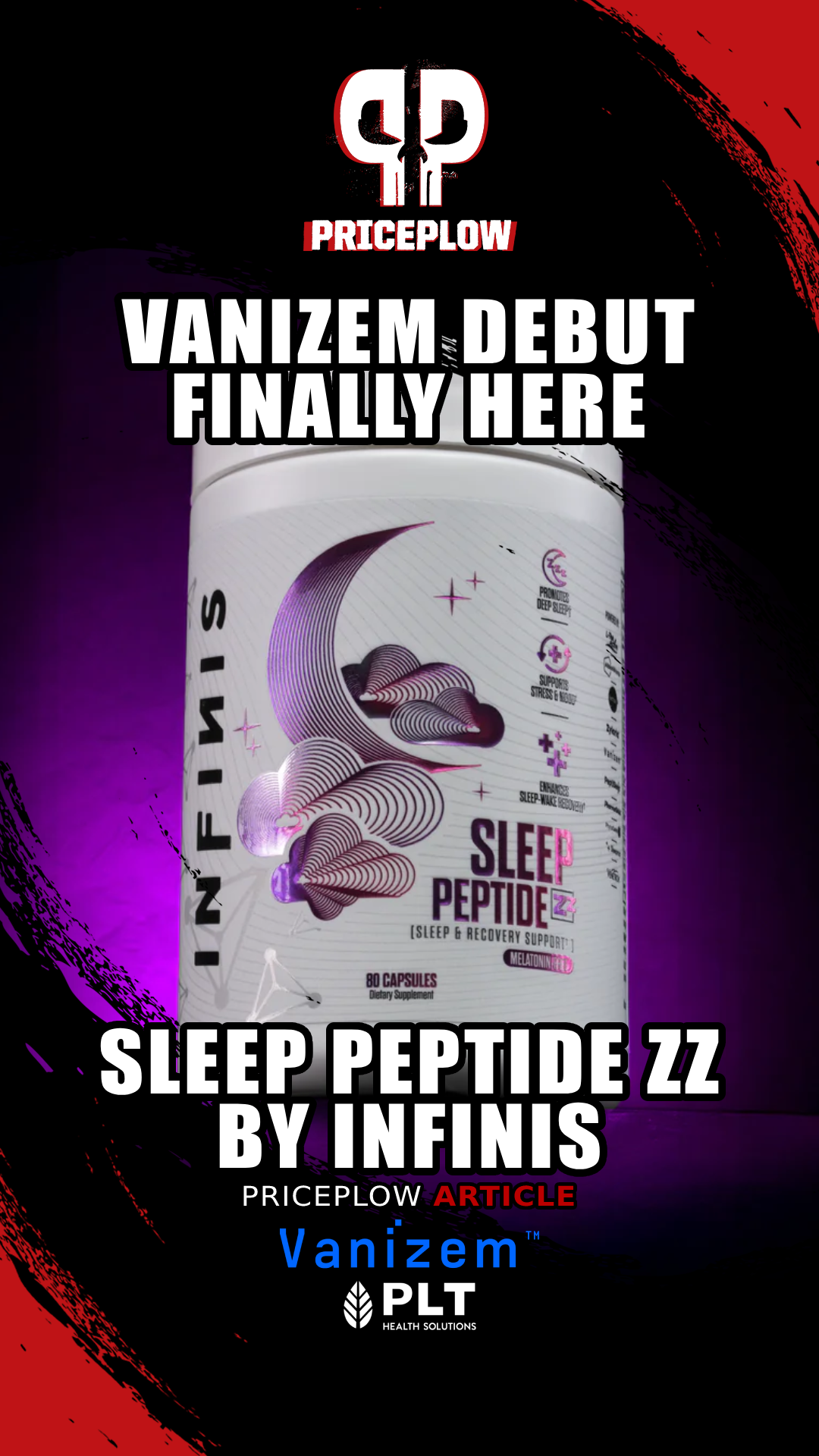 Infinis Sleep Peptide Zz debuts Vanizem, the first supplement featuring PLT Health's anandamide-boosting ingredient. Tackles sleeplessness from stress and racing thoughts with 11 branded ingredients. No melatonin needed.