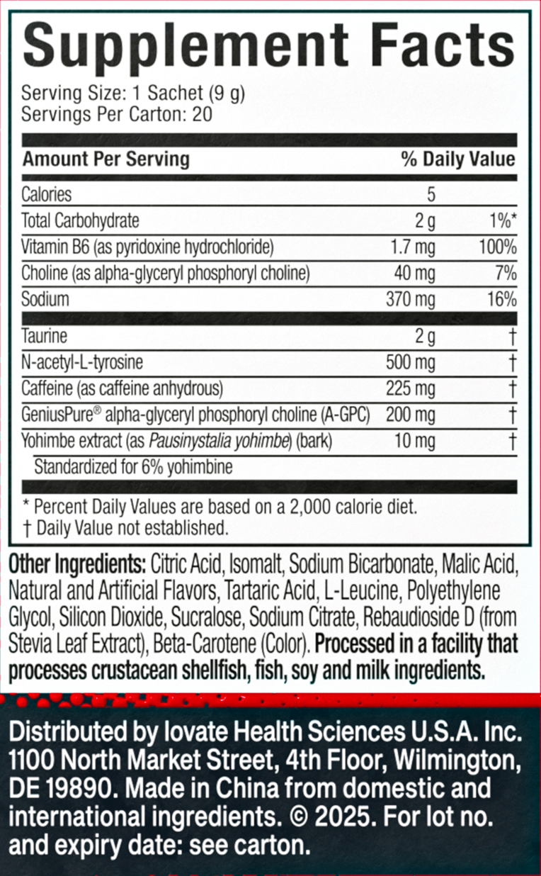 The micro-dose strategy matters here, and it's similar to what MuscleTech did with EuphoriQ V2 when they decided to amp things up just a touch. Rather than delivering the anxiety-inducing effects possible with higher yohimbine doses, this 0.6mg provides a gentle lift in alertness and energy expenditure while working synergistically with caffeine's adenosine antagonism and Alpha-GPC's acetylcholine support. The result is a more complete stimulant experience without pushing into uncomfortable territory.