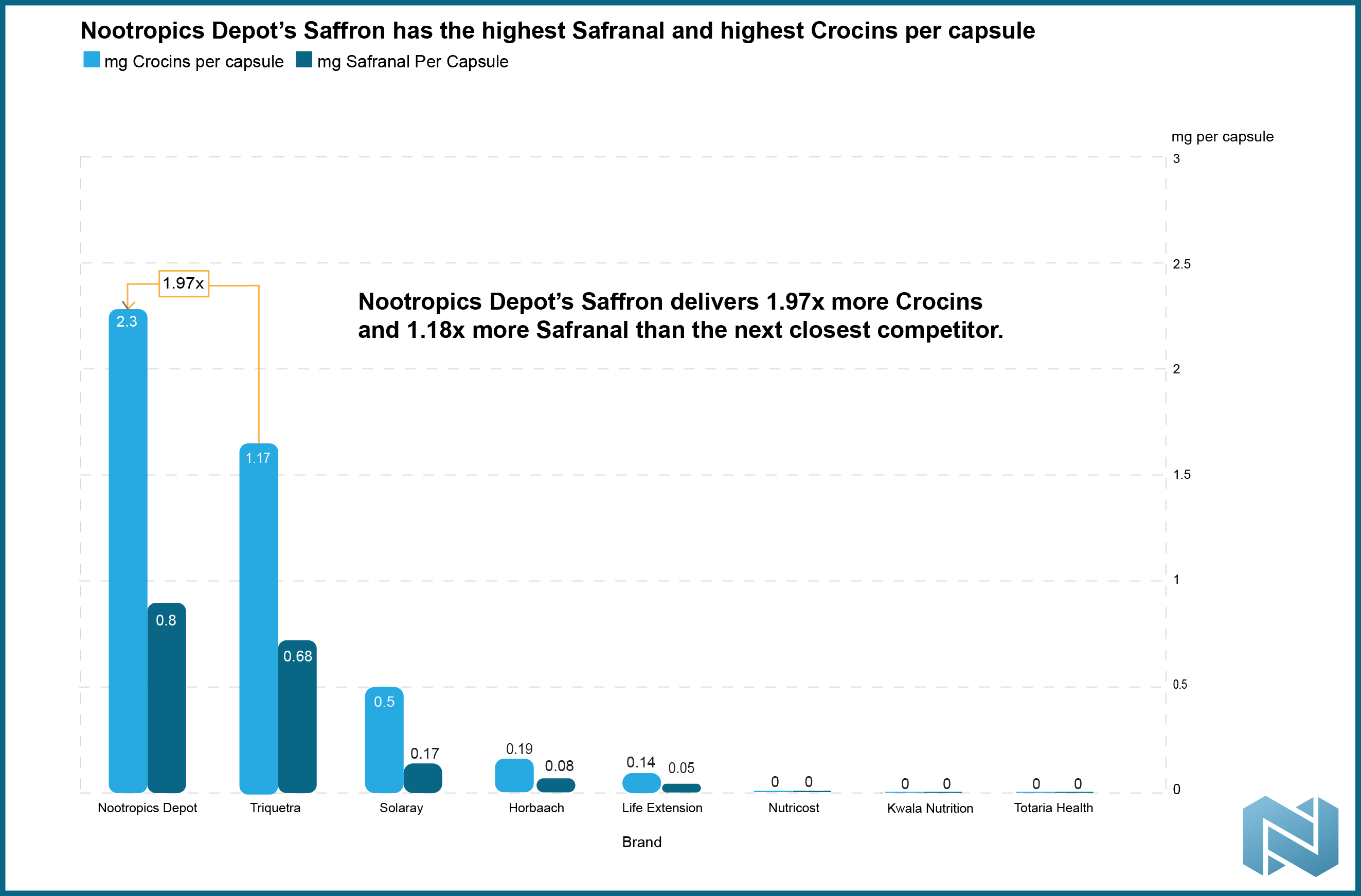 More important than saffron's potential is finding a product that actually contains adequate amounts of the above constituents. That's where Nootropics Depot steps in: