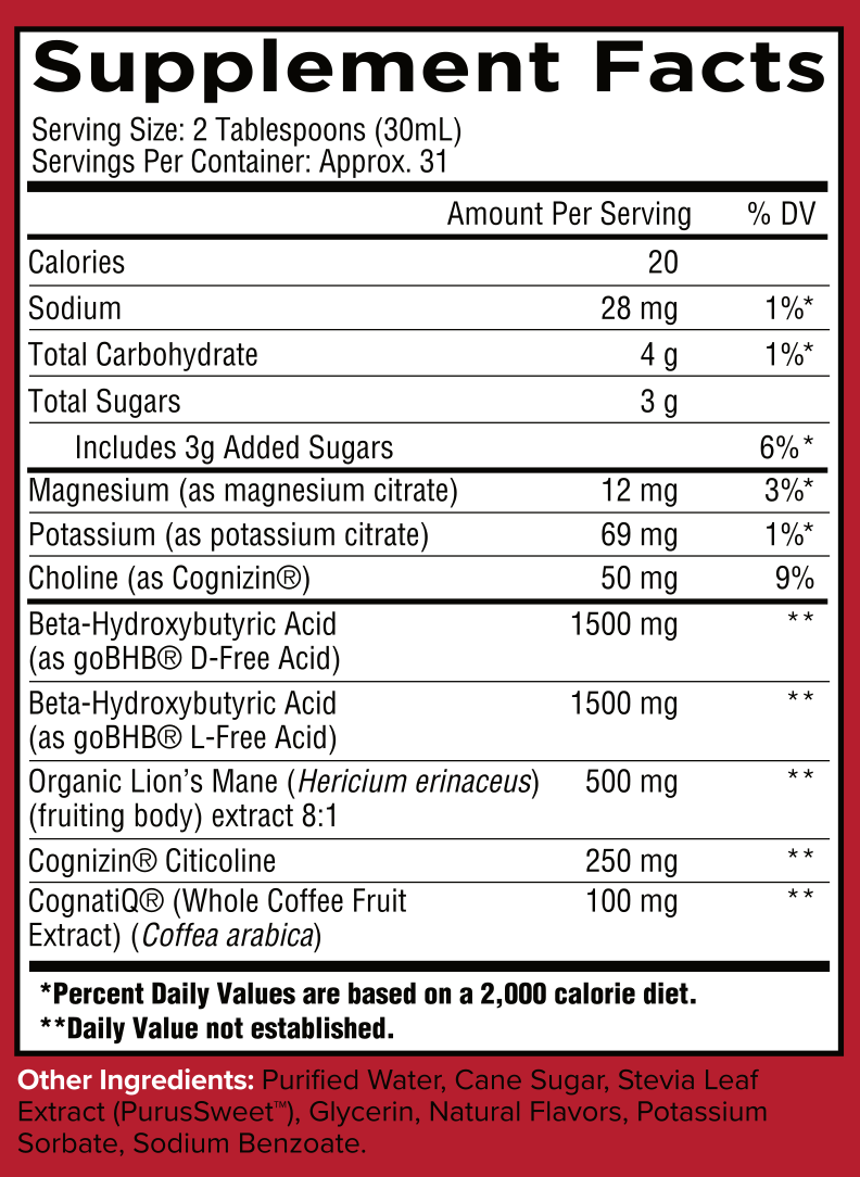 It's also rounded out by 500mg of organic lion's mane... and there's no caffeine. The energy here comes from ketone metabolism and cholinergic support, which means you can take it any time of day without disrupting sleep or triggering a crash.