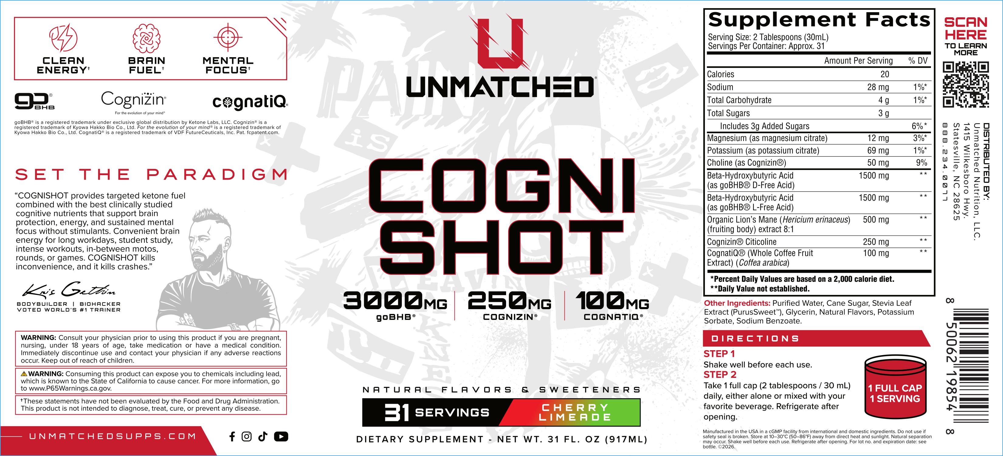 Bodybuilder and biohacker Kris Gethin has built Unmatched Supps around one idea: performance and longevity work together, not against each other. With the launch of CogniShot, the brand makes two significant moves at once. It enters liquid-format supplementation for the first time, and it formally introduces a new product tier dedicated to cognitive health and long-term resilience.