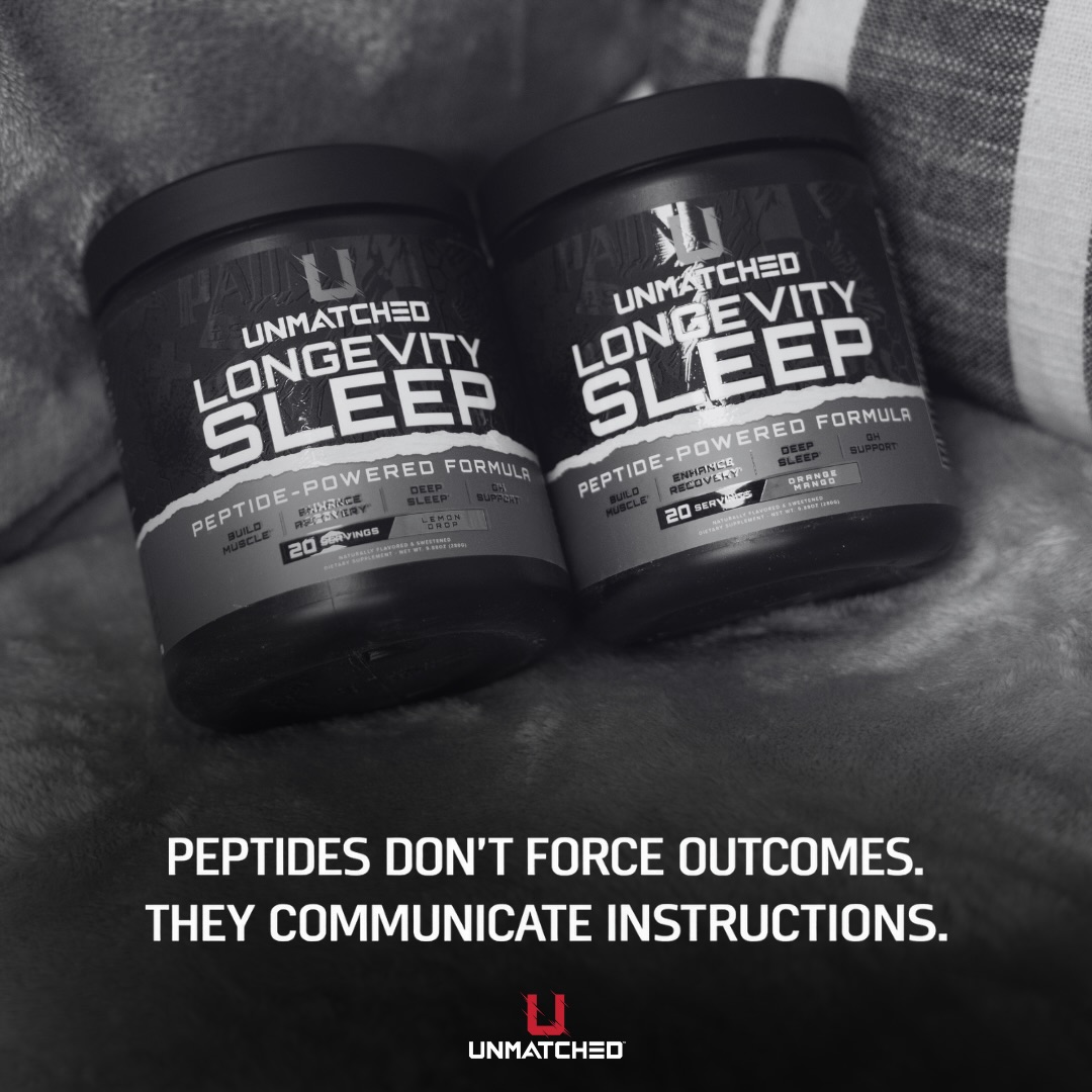 Unmatched Supps Longevity Sleep addresses this challenge with a comprehensive formula built around 250mg of PeptiSleep™, a clinically-studied plant-based peptide from Nuritas that enhances deep sleep architecture at the cellular level -- and this is our first time covering the novel ingredient made by the creators of PeptiStrong. Longevity Sleep isn't a knockout sedative that leaves you groggy, though. It's a multi-pathway system engineered to help you fall asleep faster, stay asleep longer, and wake up genuinely recovered.