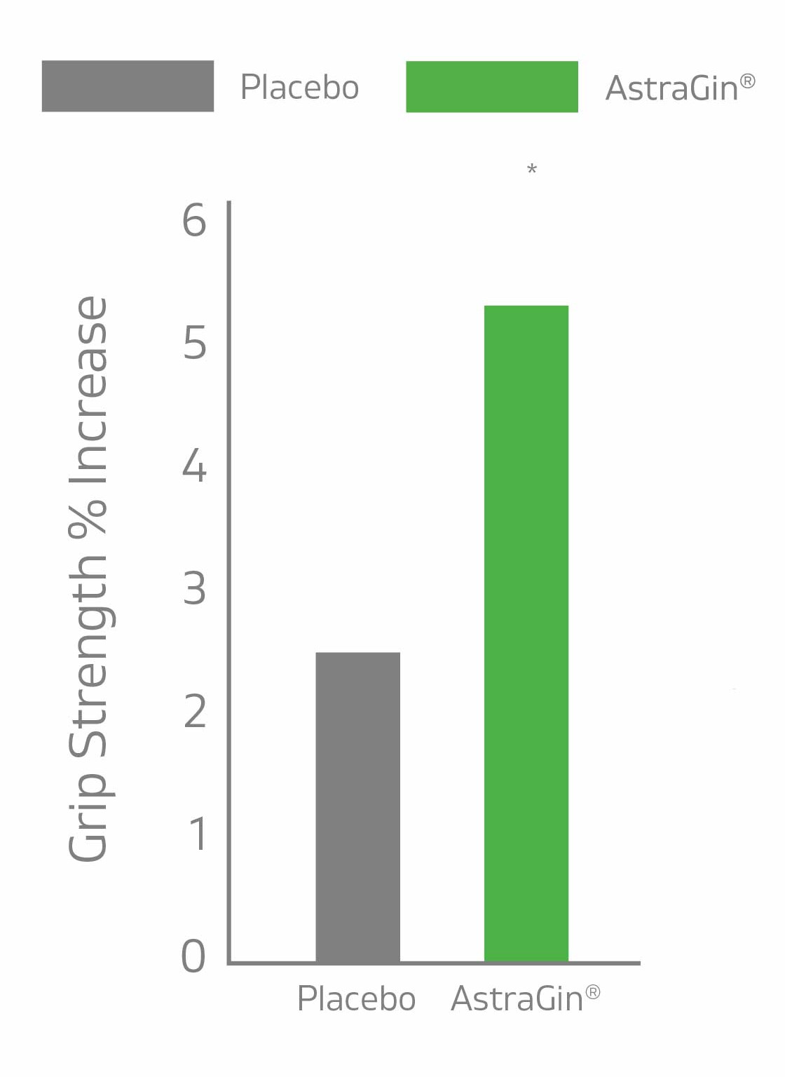 After 4 weeks of daily use, AstraGin participants gained grip strength at more than twice the rate of the placebo group (5.20% vs. 2.44%).[1]