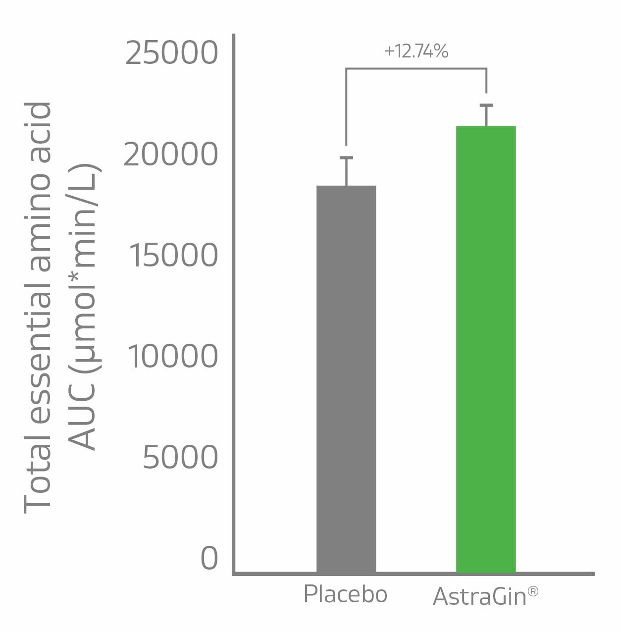 Adults aged 60 to 80 taking AstraGin absorbed 12.74% more total essential amino acids by AUC than the placebo group after 4 weeks of supplementation.[1]