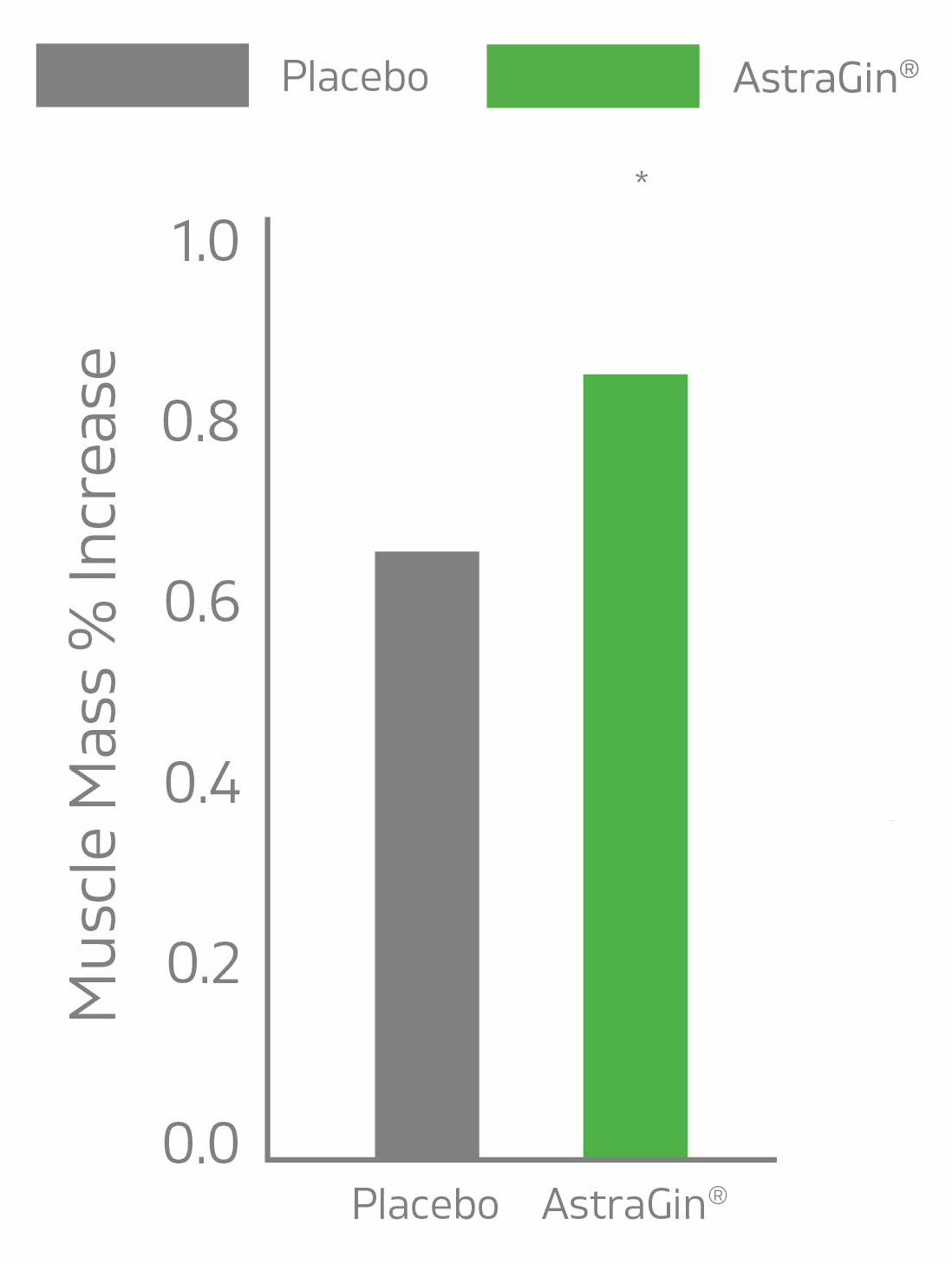 AstraGin users saw a 0.85% increase in muscle mass after 4 weeks versus 0.68% in the placebo group, a trending but non-significant difference in this pilot study.[1]