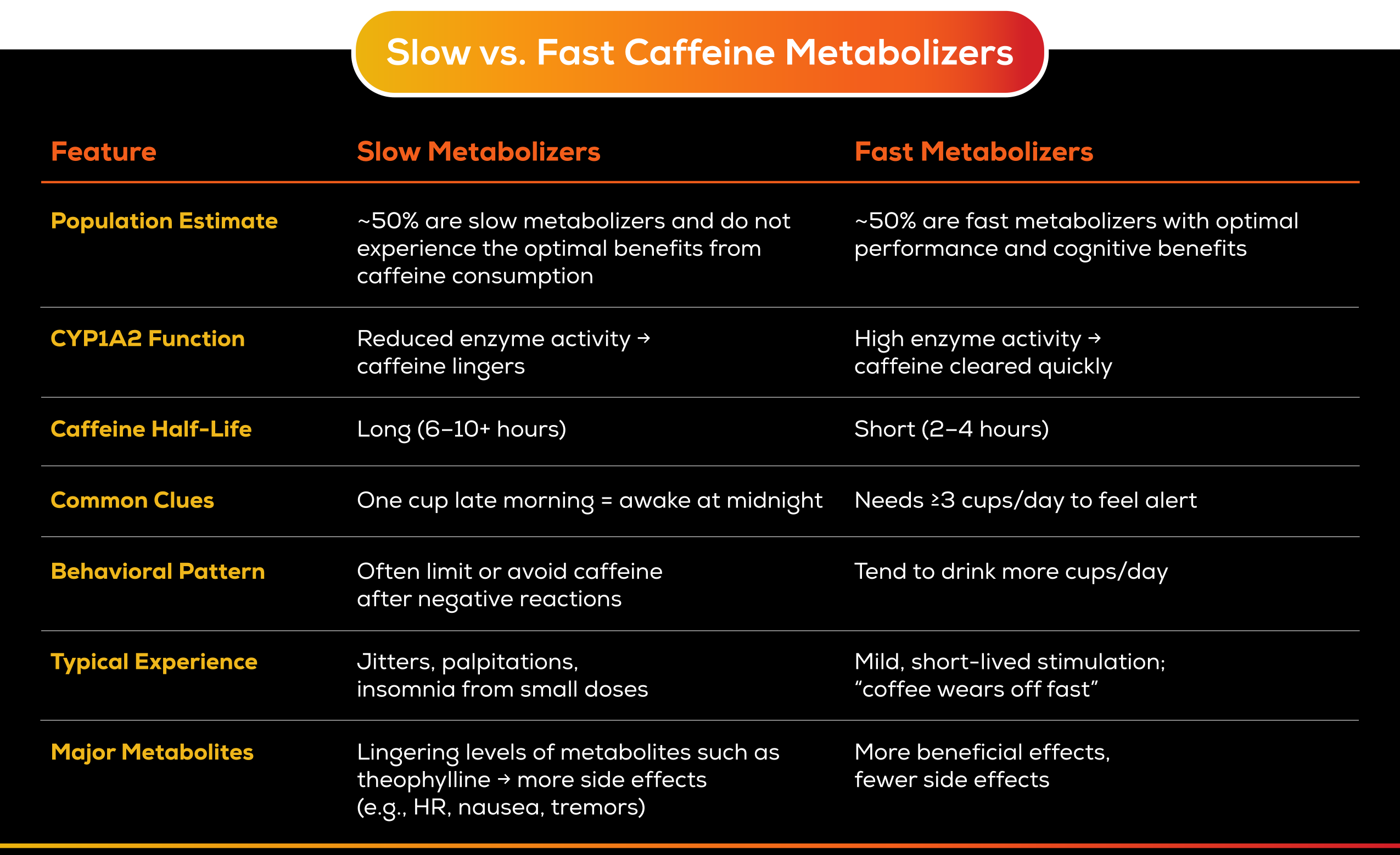 The genetic divide between fast and slow metabolizers has real health implications beyond sleep disruption.